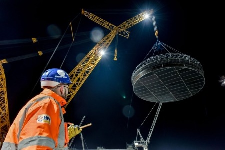 Engineers and lifting specialists at Hinkley Point C worked through the night to successfully complete the first big lift by the world’s largest crane.