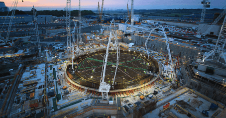 The completion of the base for the first reactor means that the construction of the nuclear buildings above ground can now begin in earnest.