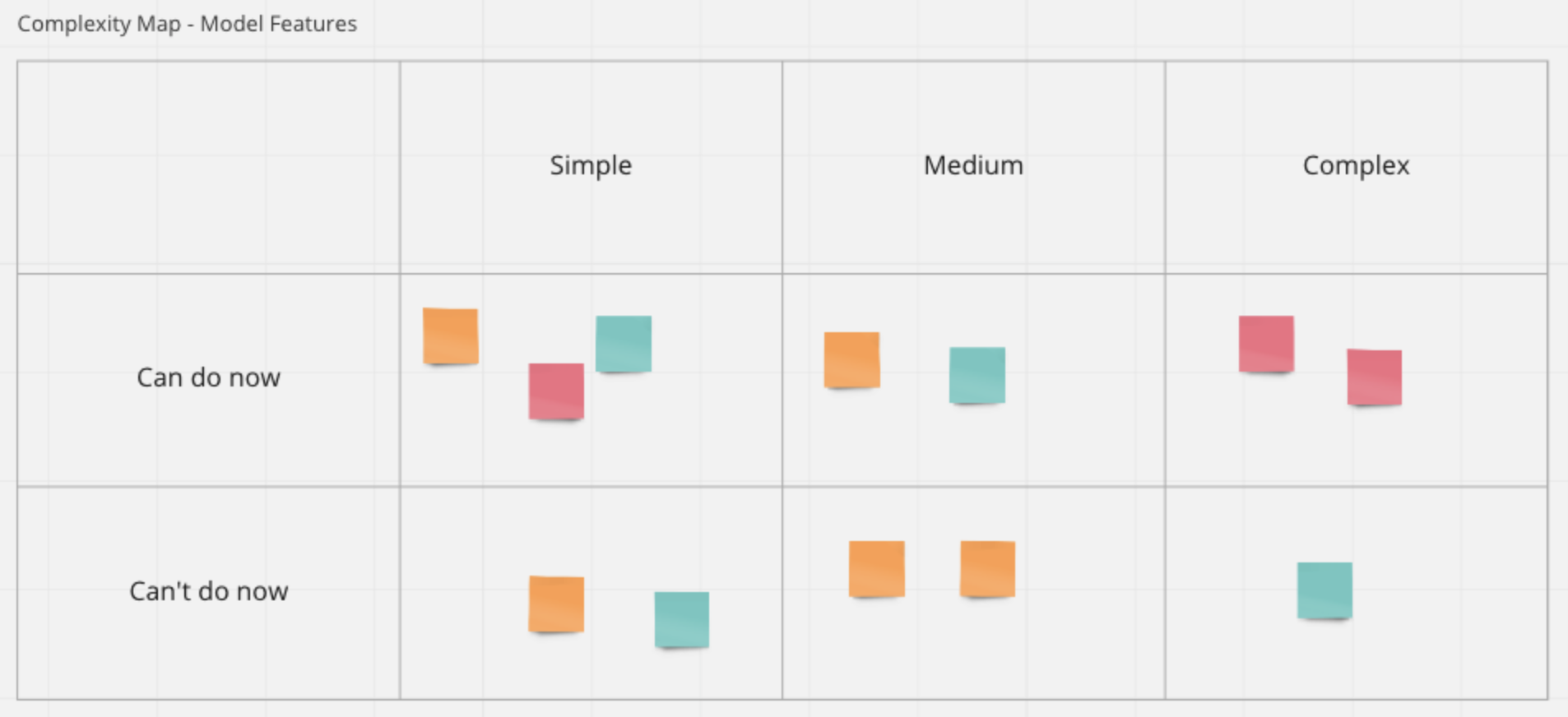 Next, the entire product team collaborated on Miro to generate a list of useful features for hypothetical models which we then organised into a model feature complexity map. The map grouped features based on two criteria: complexity and achievability (time-wise based on data availability).
