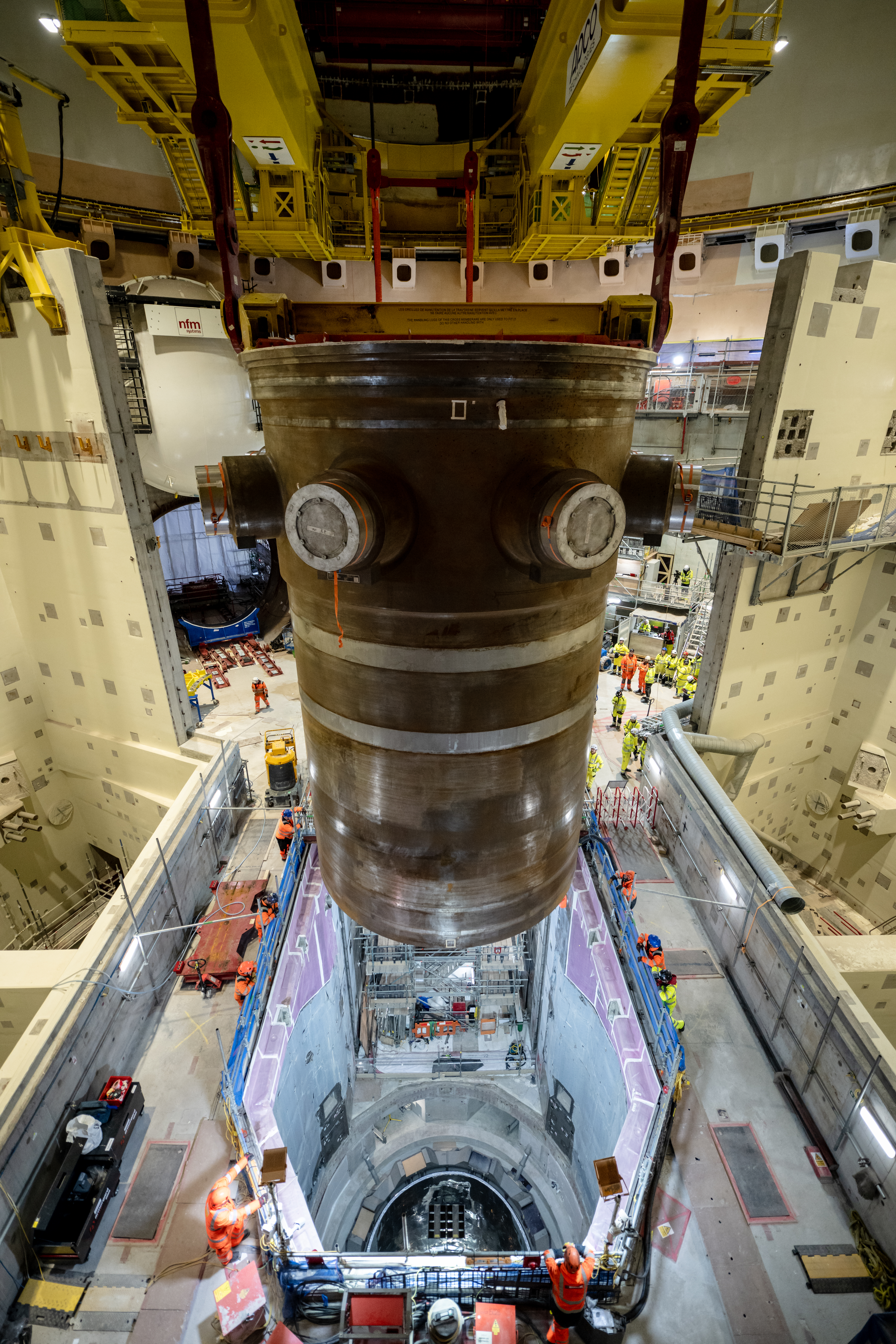 The “reactor pressure vessel” (RPV) is a 500-tonne steel container that holds nuclear fuel used to make heat to produce steam for the world's largest turbine, from Arabelle Solutions. The RPV, manufactured by Framatome in France, arrived at Hinkley Point C in February last year and has been in store until the installation, which was completed on Tuesday 3 December.