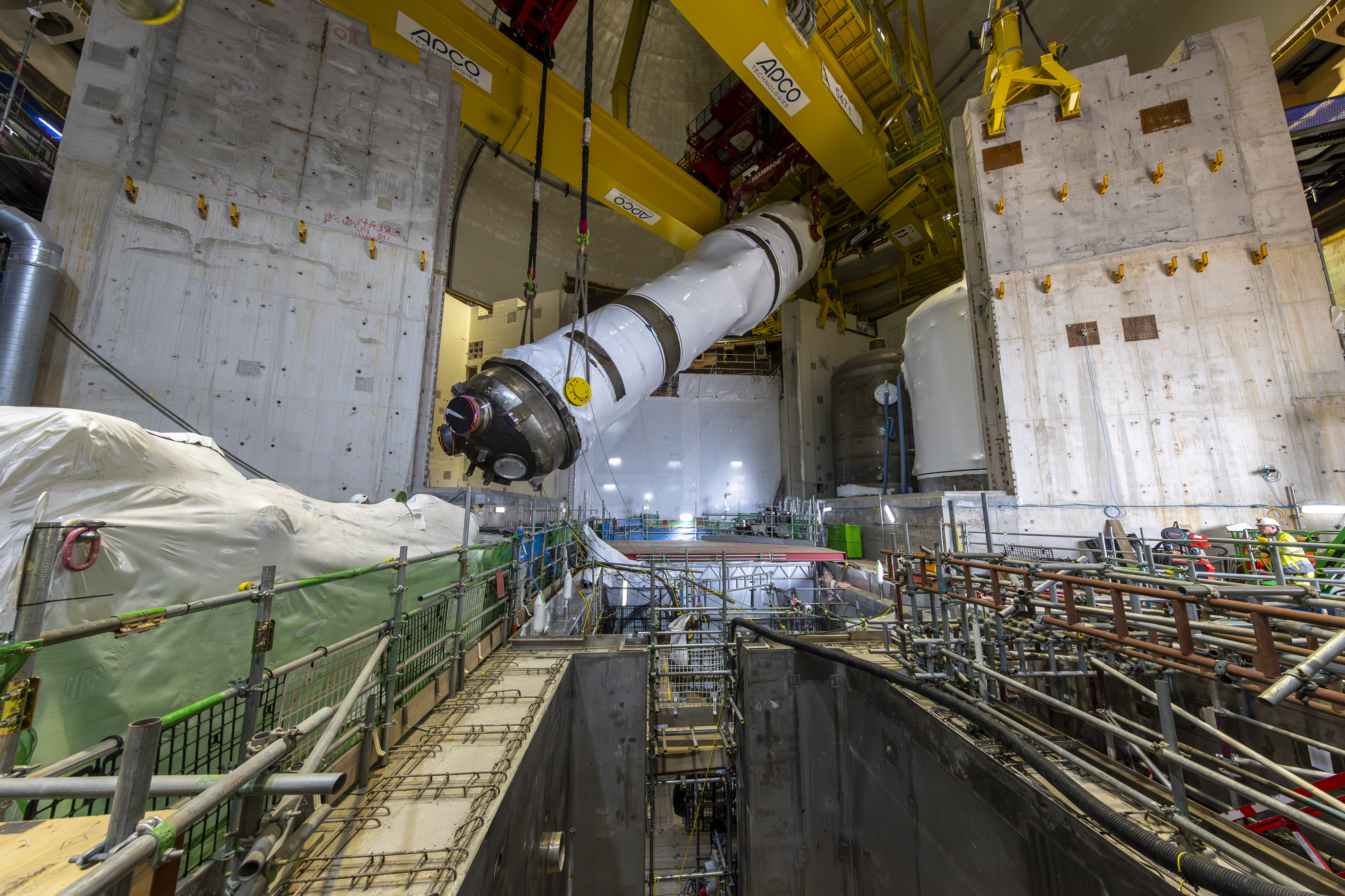 Key equipment, such as this huge steam generator, is now installed inside the first Reactor Building.