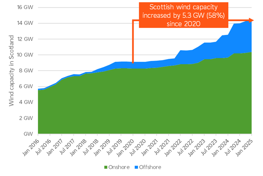 Figure 2: Wind capacity in Scotland is growing quickly
