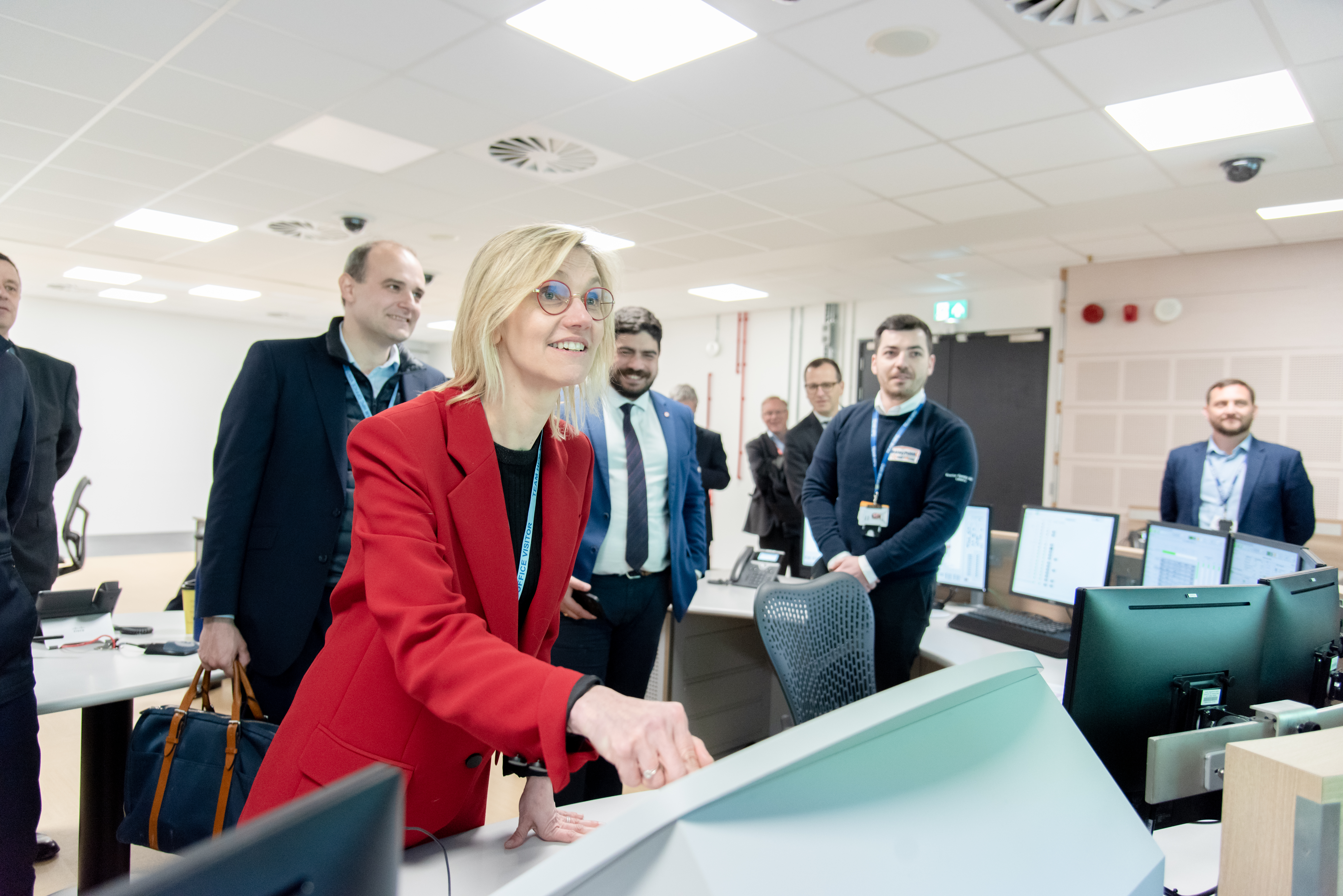 Agnès Pannier Runacher, French Minister for Energy Transition, visited Hinkley Point C Site in April. Here she is pictured in the Simulator Building meeting teams.