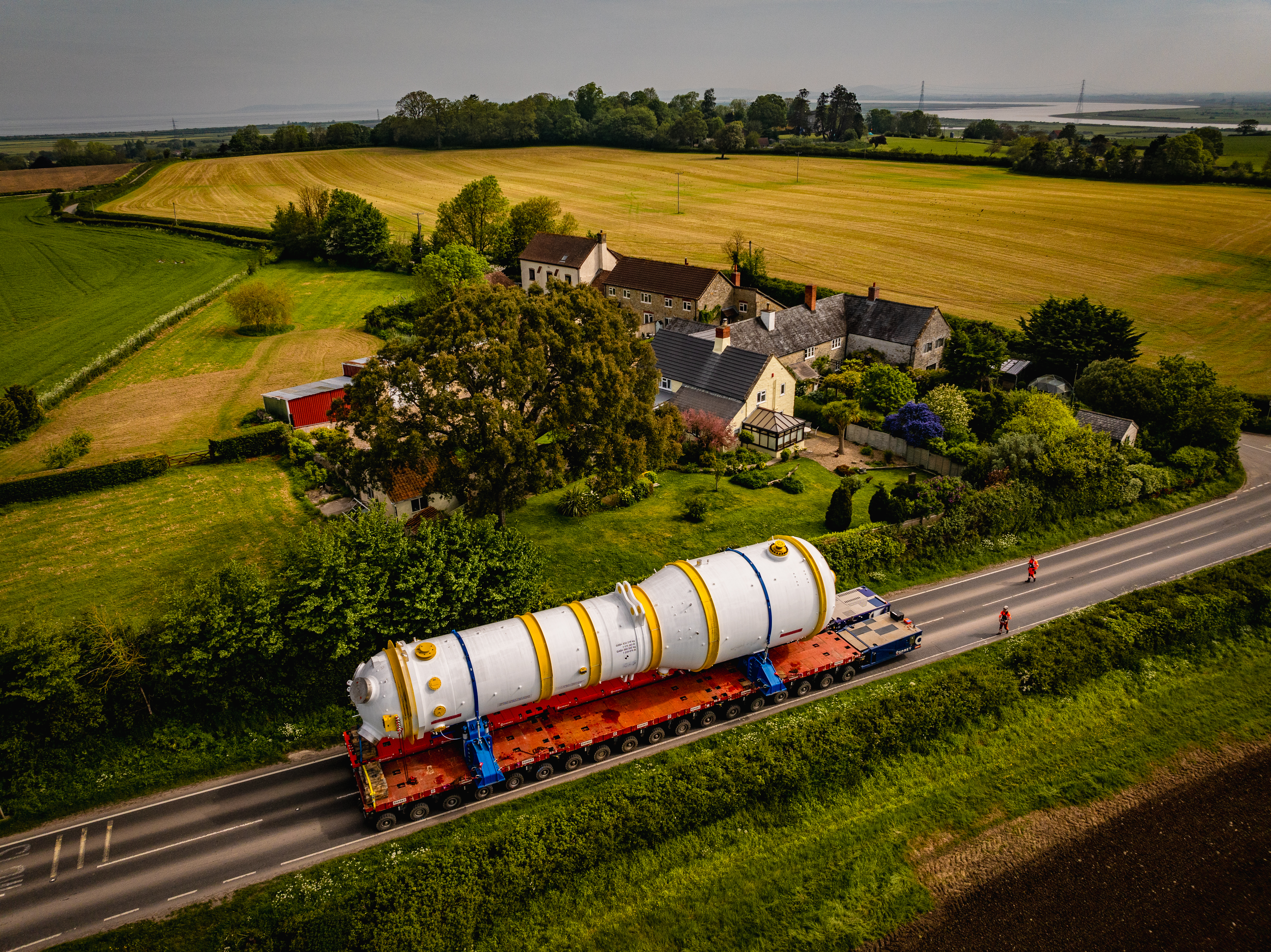 The steam generator travelled the final four miles by road transporter after arriving from Avonmouth at Combwich Wharf on the River Parrett in Somerset.
