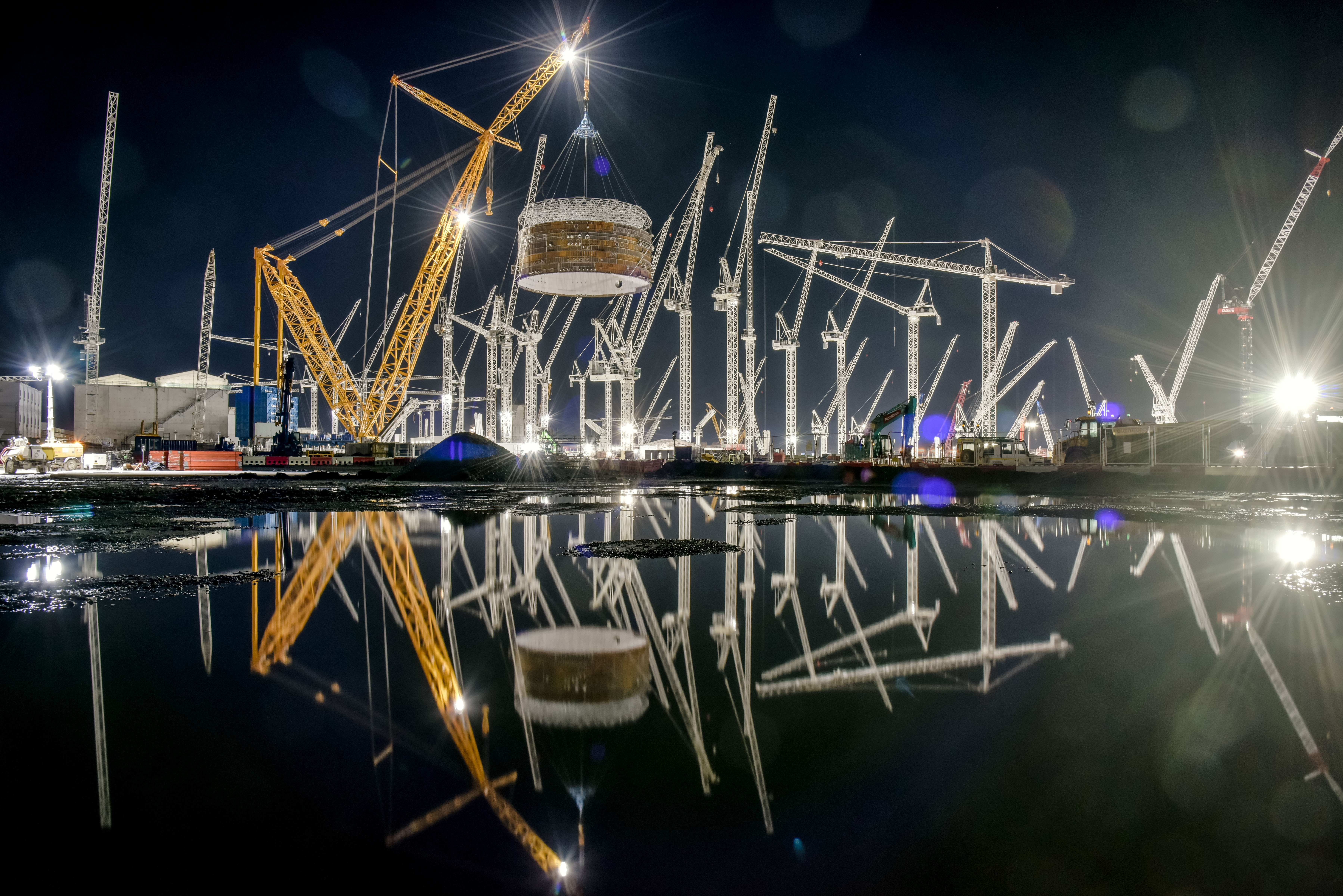 Big Carl, the world’s largest crane, has just completed its biggest ever lift at Hinkley Point C. The super-crane lifted a total weight of 575 tonnes to install the first of three massive prefabricated steel rings which form the reinforced cylinder around the nuclear reactor.
