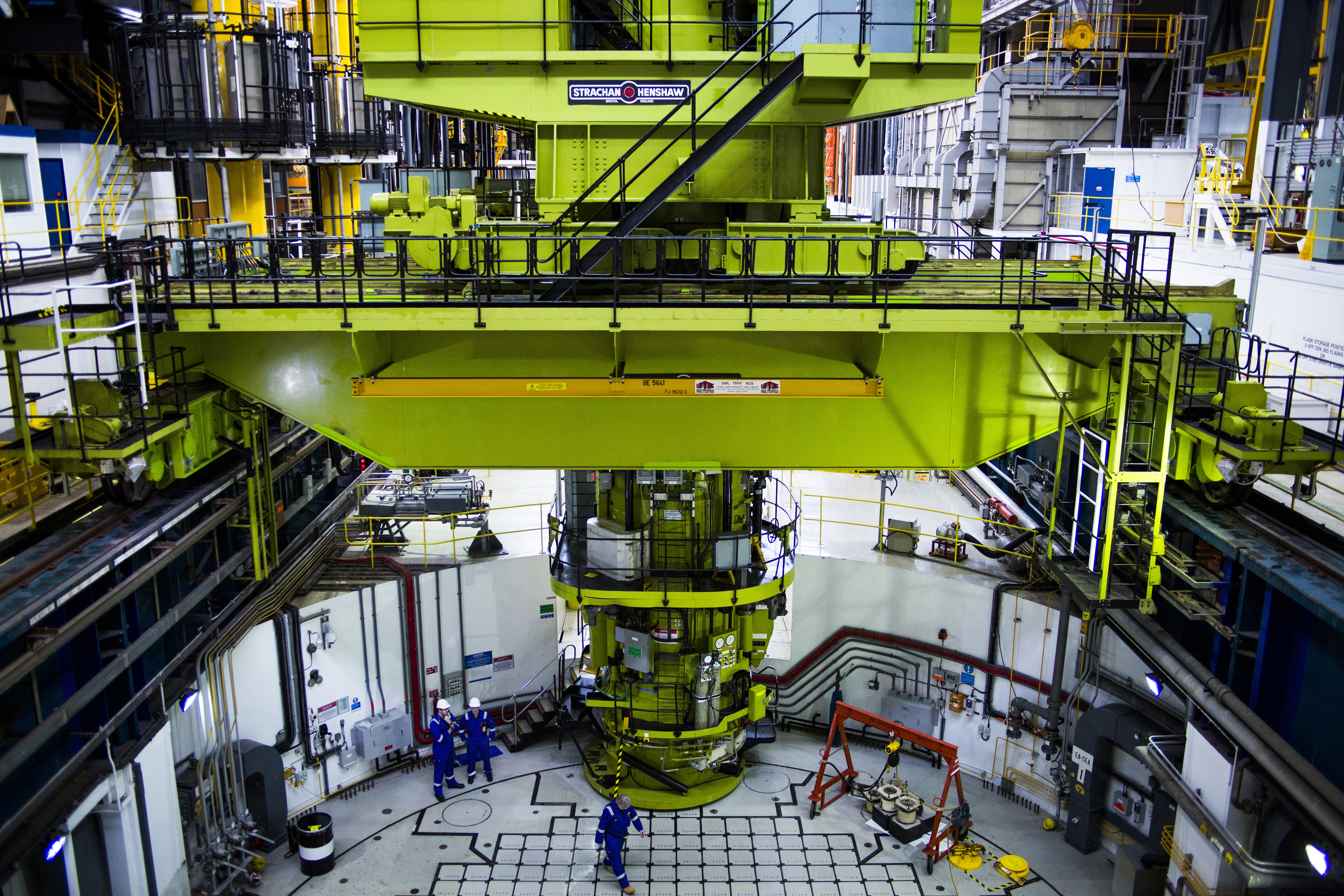 The fuelling machine pictured on top of one of the two reactors at Hinkley Point B