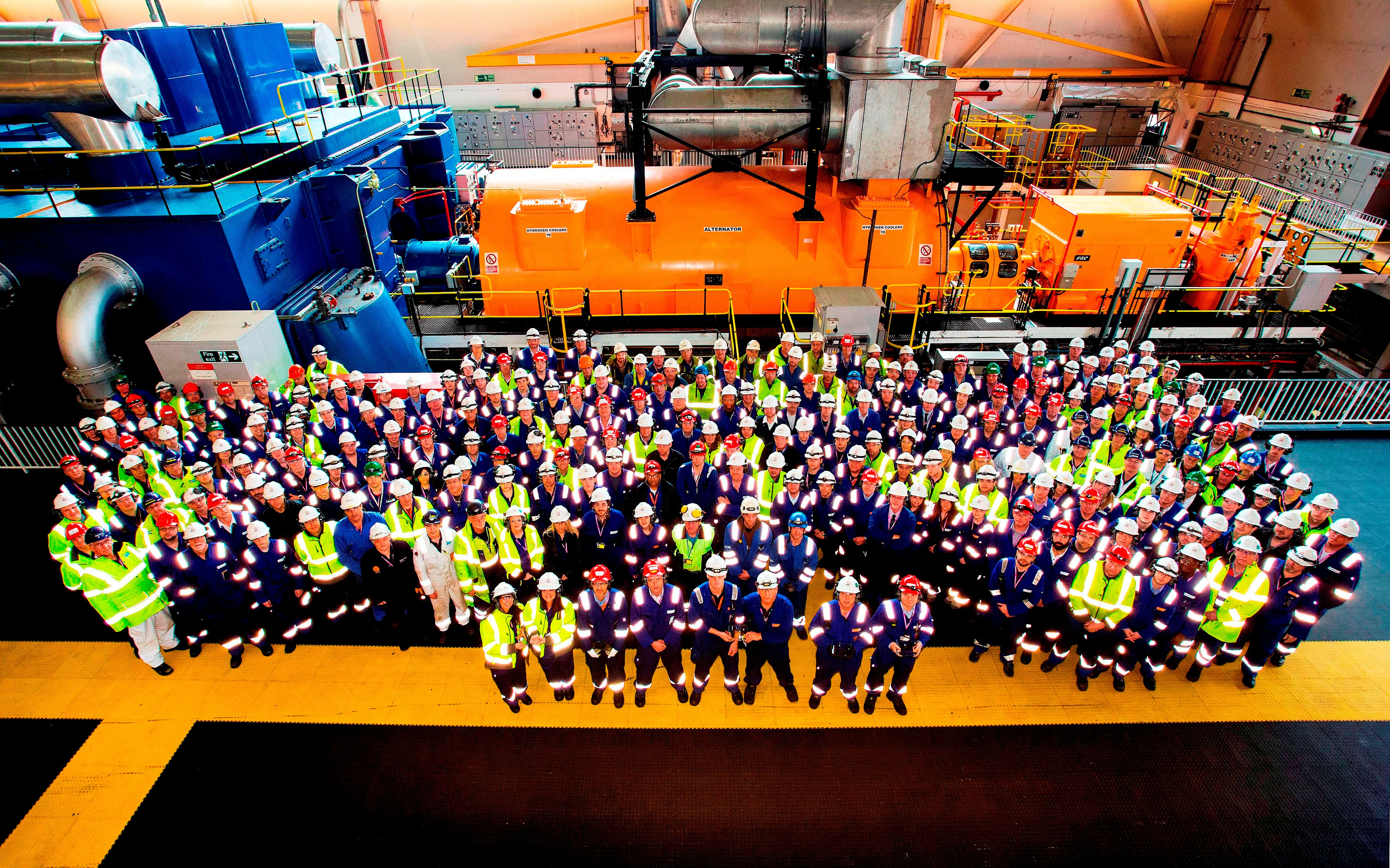Hinkley Point B staff gathered in the Station's turbine hall.