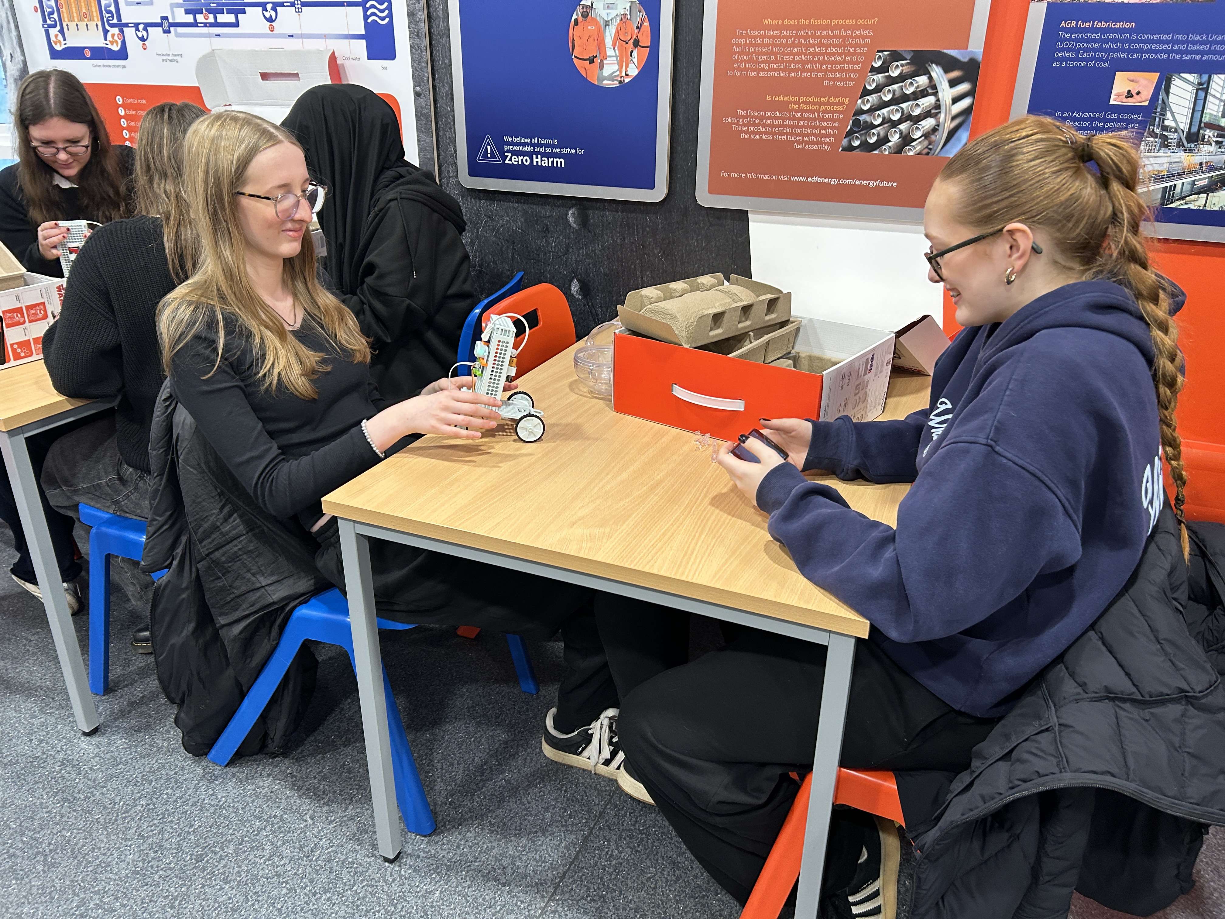 Girls taking part in a STEM activity at Torness Visitor Centre